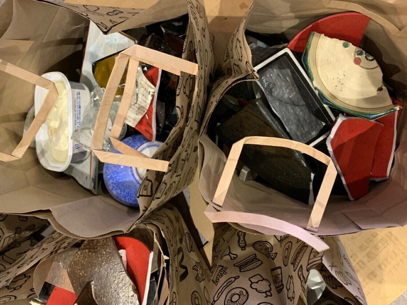 壊れた食器と酒瓶