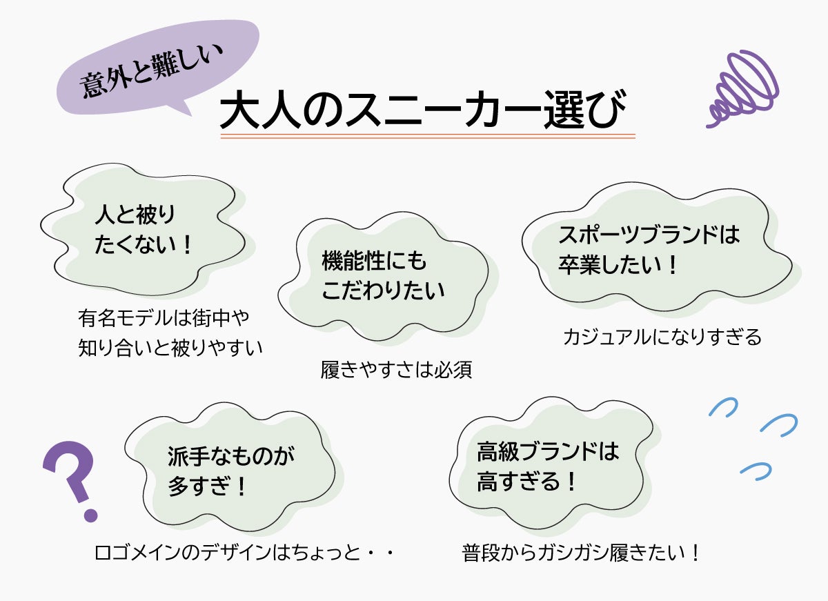 「服は無地で良いものがたくさんあるけど、スニーカーはどれを買えばいいかわからない!」