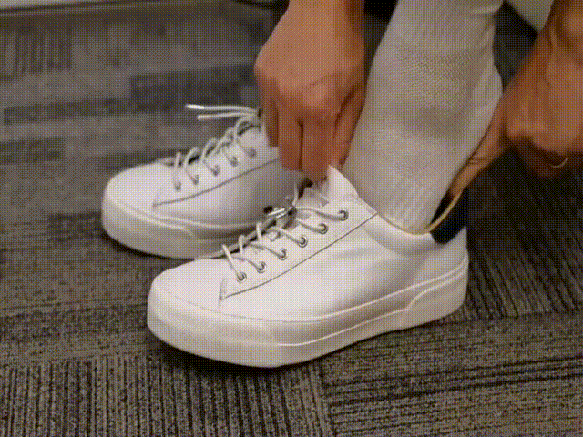 ⑤靴ひもを縛ることなくさっと履けるコードロックシステム