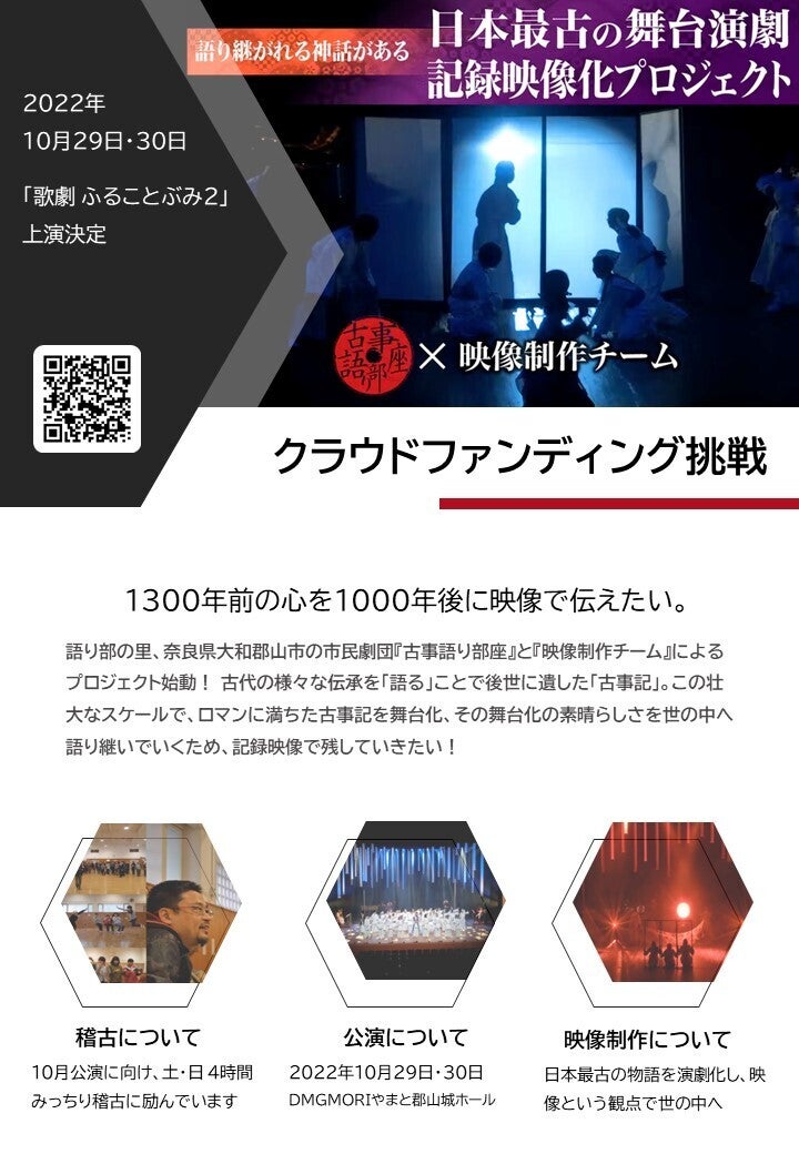 みなさまのおかげで20パーセント到達いたしました。ありがとうございます。滑り出しは好調で大変ありがたいことですぜひ、この機会に大和郡山市民劇団「古事語り部座」を知って頂けたらと思います。そして、ぜひ10月29日・30日の舞台にお越しいただければと存じます。