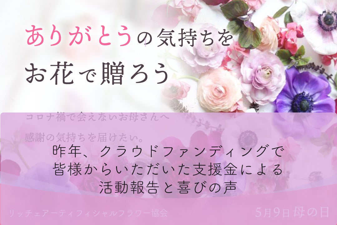 2022/07/18 00:00 「母の日に贈る花ギフトで、子供たちに花塾で笑顔を届ける」社会貢献クラウドファンディング今年も多くの皆様のご支援や応援メッセージをいただきありがとうございました。いよいよ,支援者の皆様のお気持ちを届けていきます!普段お花に触れる機会の少ない子供たちにも美しいお花に触れ、ものづくりの達成感や自己肯定感を上げて心の成長や未来へつながる好奇心へと繋いでいくことができたら嬉しいです。 一般社団法人リッチェフラワースマイルズジャパン_________________________今年の会計報告をさせていただきます。支援者数:143人総支援額:1474870円【会計報告】〔入金〕 総支援額 1474870円〔出金〕 キャンプファイヤー手数料・花材費・資材費・梱包代・送料 1220683円【最終金額】=〔入金〕ー〔出金〕=254187円◇キャンプファイヤーへの手数料、資材費、配送料等の経費を除き、254,187円を7月からの花塾開催費用として児童養護施設・放課後児童クラブ・児童発達障害学童施設 他多くの必要とされる皆さんへ、協会講師とともにお花で笑顔を届けて参ります。【現在の花塾開催決定施設はこちら】・7月2日 児童養護施設エスペランス桑名・8月10日 放課後児童クラブスプリング・7月6日 児童発達支援 放課後デイサービス もりのいえ みーさ・8月20日 中日青葉学園花塾が必要と思われる施設職員さまやお知り合い、ご家族の施設でご希望の場合は下記よりお気軽にご相談くださいリッチェスタジオお問合せ協会ホームページ もっと見る