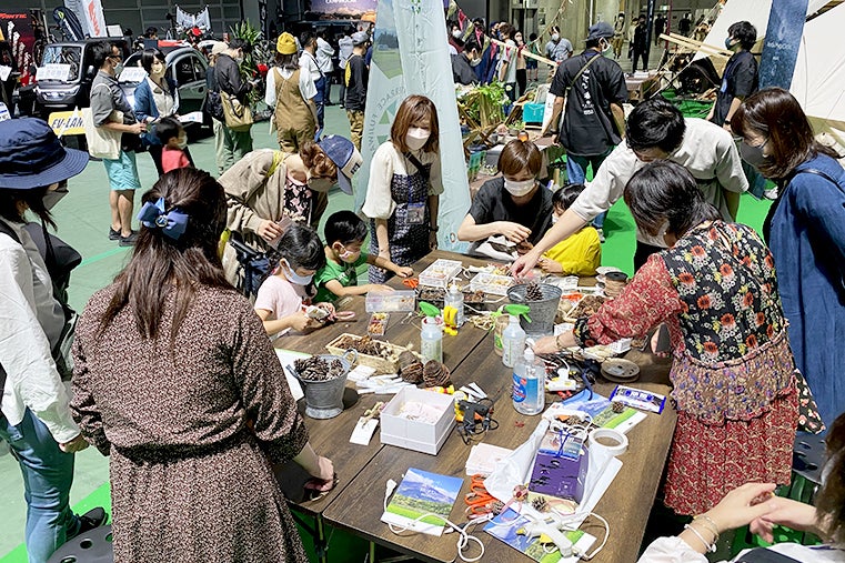 イベント2日間で約100名の子供たちに、いなべ市の山で拾った木の実やドライフラワーを使って「ものづくりの楽しさ」「表現する喜び」をワークショップ「花塾」で体験していただきました。コロナ禍でさまざまな制限がある中、子どもたちが満面の笑顔で心から楽しむ姿に「子どもの笑顔は未来の光、社会の元気の源!」であることを実感しました。