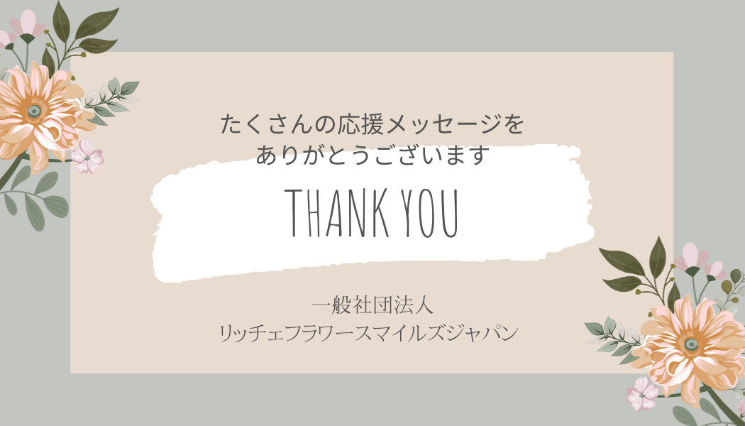 この様に私たち(一社)リッチェフラワースマイルズジャパンは皆さんの笑顔、喜びの声、励ましの声、仲間の応援に支えられ、ご縁をつなぎ活動して参りました。