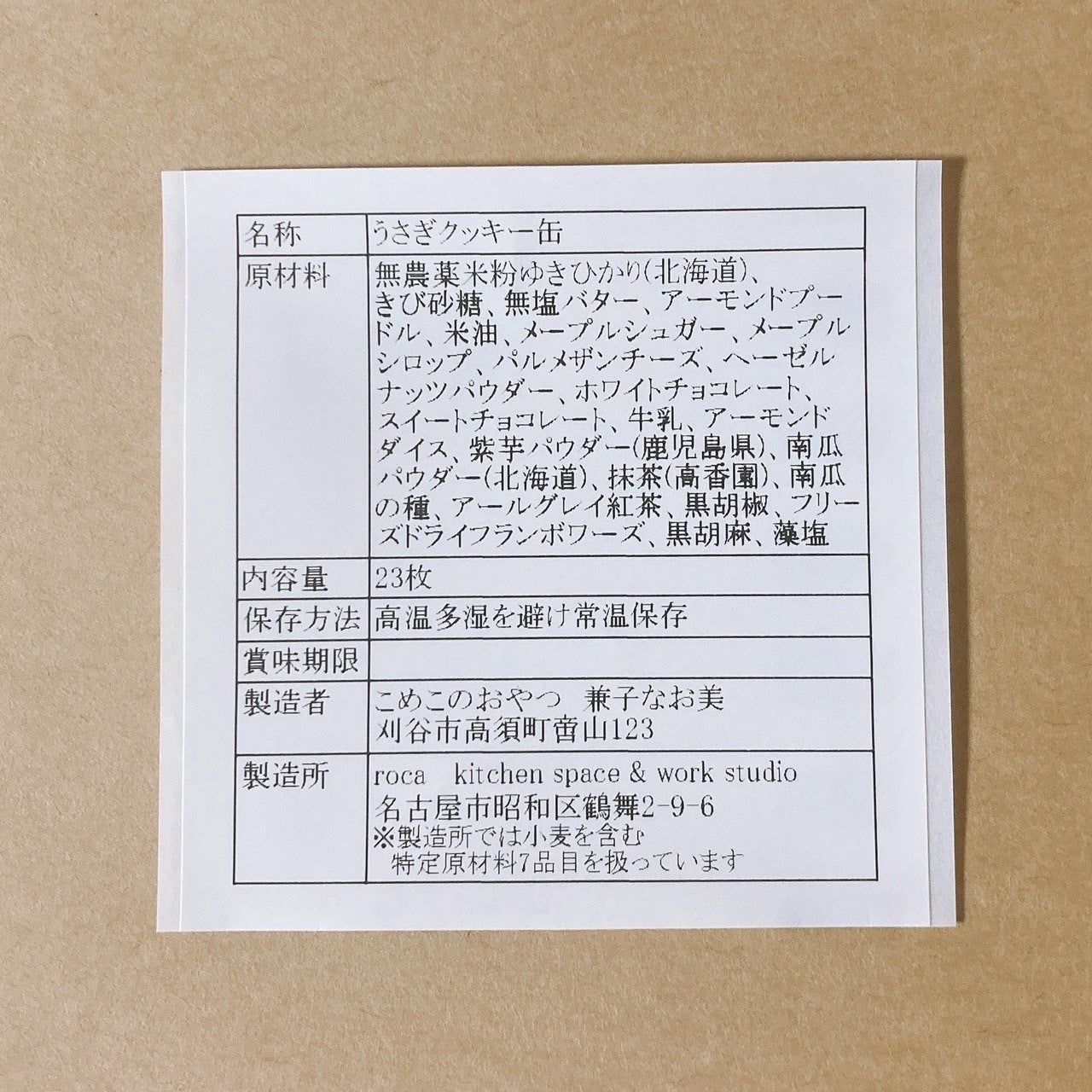 無農薬米粉ゆきひかり(北海道)、きび砂糖、無塩バター、ヘーゼルナッツパウダー、ホワイトチョコ、藻塩