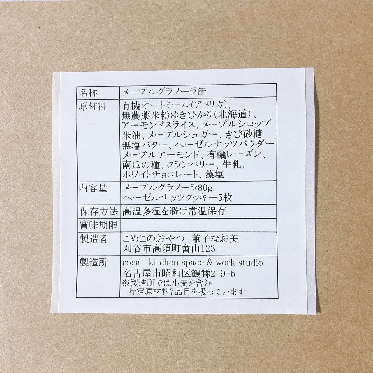 有機オートミール、アーモンドスライス、メ-プルシロップ、米油、メ-プルシュガー、無農薬米粉ゆきひかり(北海道)、メープルアーモンド、有機レーズン、南瓜の種、クランベリー、藻塩