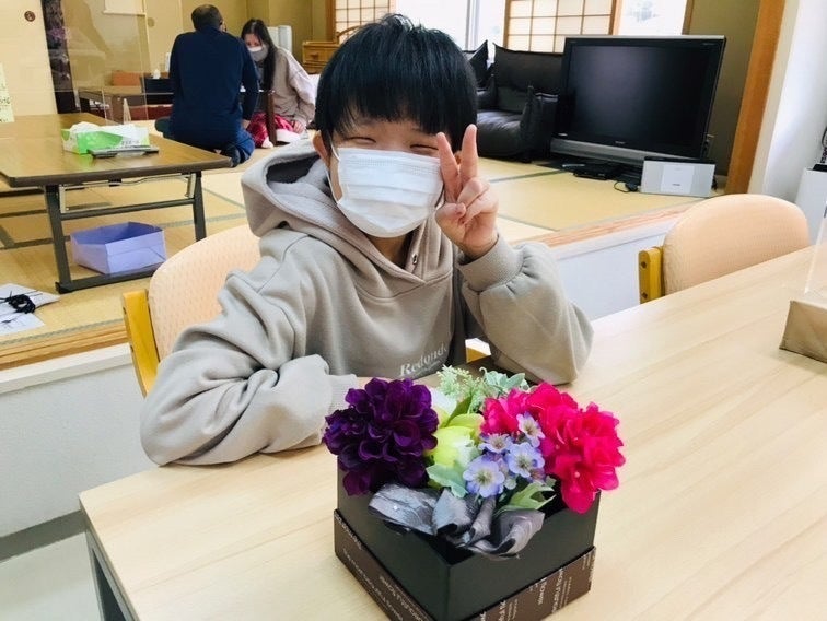 支援者様の想いが集まりネクストゴールを達成することができました!いつも応援や温かいメッセージ心よりありがとうございます。療育センターや特別支援学校放課後デイサービスなどの福祉施設や児童養護施設で暮らす100人の子どもたちへご支援者様の想いをのせて花塾を届けて参ります!優しくてあたたかい企画に感動しました、お花を通して子供たちの世界が広がりますとお届け予定の放課後デイサービスの職員様からお喜びの声を頂いております。写真は、障がい者デイサービスひのたに様にて行われたレッスンにて、完成作品と微笑むご利用者様の素敵な笑顔、私たちまで笑顔になります。今年もお花に触れた子どもたちの心へ、笑顔が咲きますように。そしてお母さんやご家族の笑顔へ、さらには各家庭から世の中へと「笑顔の循環をお花で」一緒に実現させていきましょう!プロジェクト終了まで、あと6日です。1人でも多くの笑顔へつなげるため引き続き走り続けます!フラワー教室 花かんむりインスタグラム犬塚さとみ協会インスタグラム