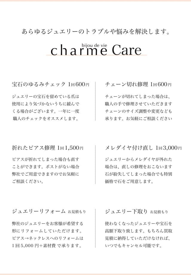人生で長く身に着ける大切なジュエリーだからこそ 、『購入後』にそのジュエリーやブランドとどう付き合っていくかがとても重要だと考えています。