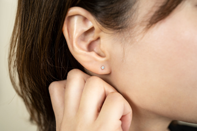 意外と見られている横顔も、いつだって美しくありたい。そんな些細な瞬間やあなたの美意識にアクアブルーダイヤモンドが静かに寄り添ってくれます。