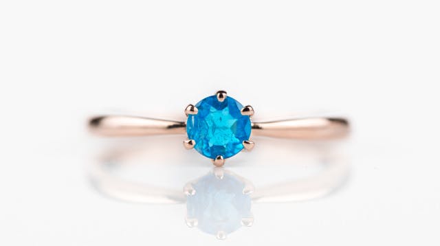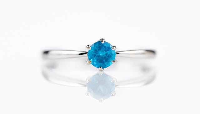 美しい海のような青をもつ希少な宝石で、ネオンカラーのグリーンがかったブルーを発色するのは、宝石の中でパライバトルマリンと、このアパタイトのみといわれています。