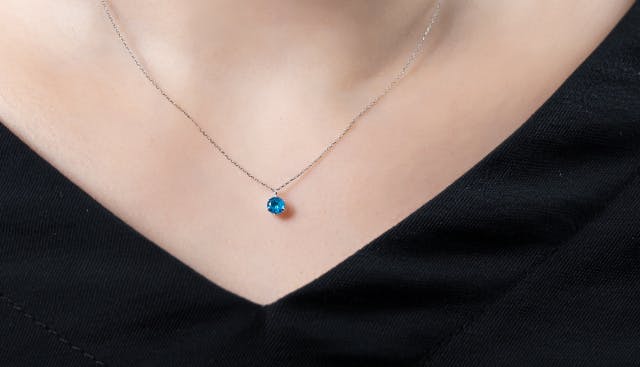 そしてこの「ネオン」とよべるほどに強く煌くブルーは、暗がりのわずかな光だけで魅力的に発光します。暗闇でも自ら輝く「ネオン感」ある強い煌きを是非、ジュエリーでお楽しみください。