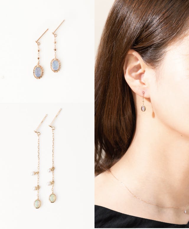 オパールは、揺らめくように角度や光でその表情を変えながら煌めくため、ちょっとしたお呼ばれの席や特別な日の装いにもぴったりで、シーンを選びません。 年代を問わず人気の宝石で、日常のコーディネートに合わせればオシャレがぐっと引き立ちます。