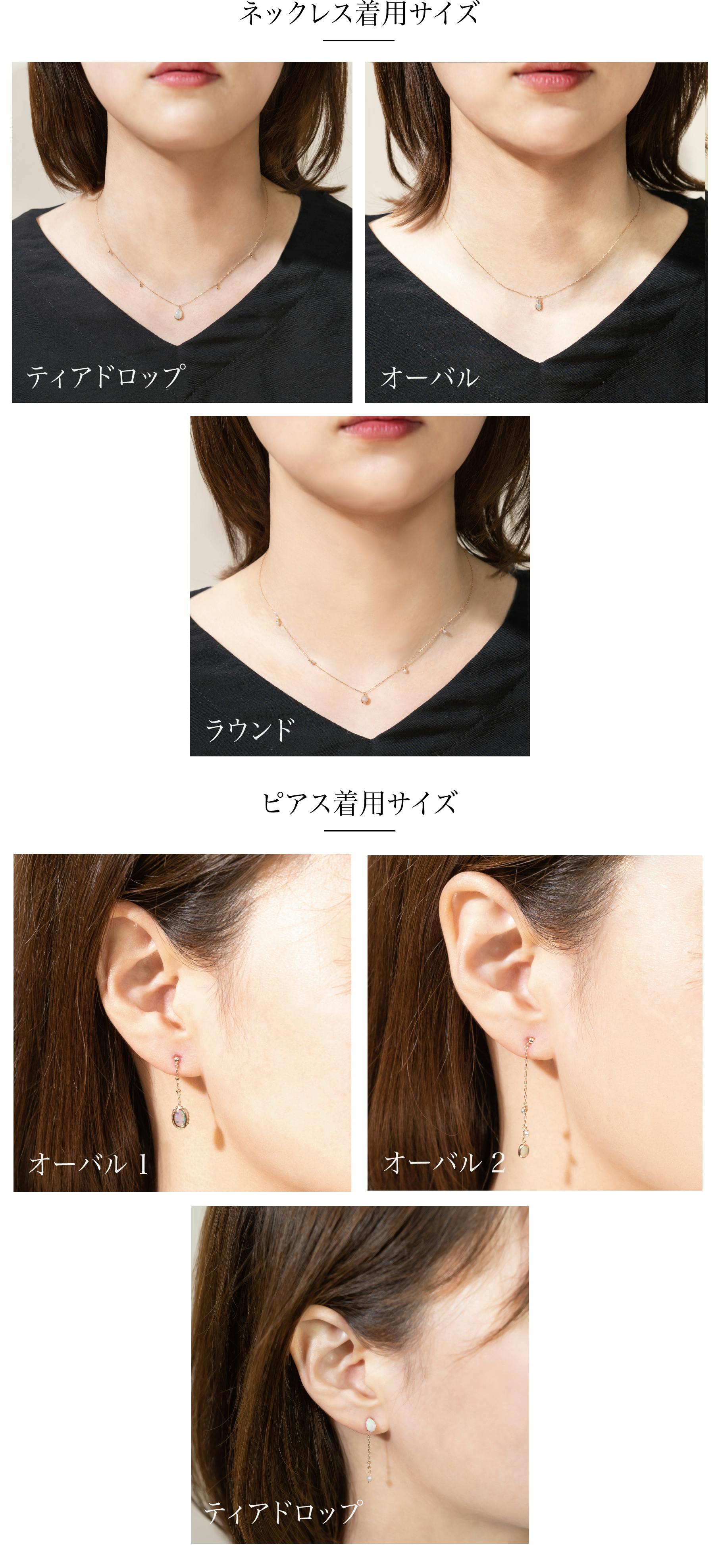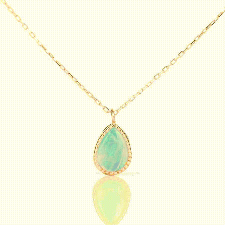 そのため、身につける服の色合いによっても様々な表情を見せてくれます。オパールは下地(服等)の色が黒だと写真のような濃い色合いになり、下地の色が白だと淡い色合いになります。※天然石のため石それぞれに個性がございますので、多少の色の違いはございますのでご注意ください