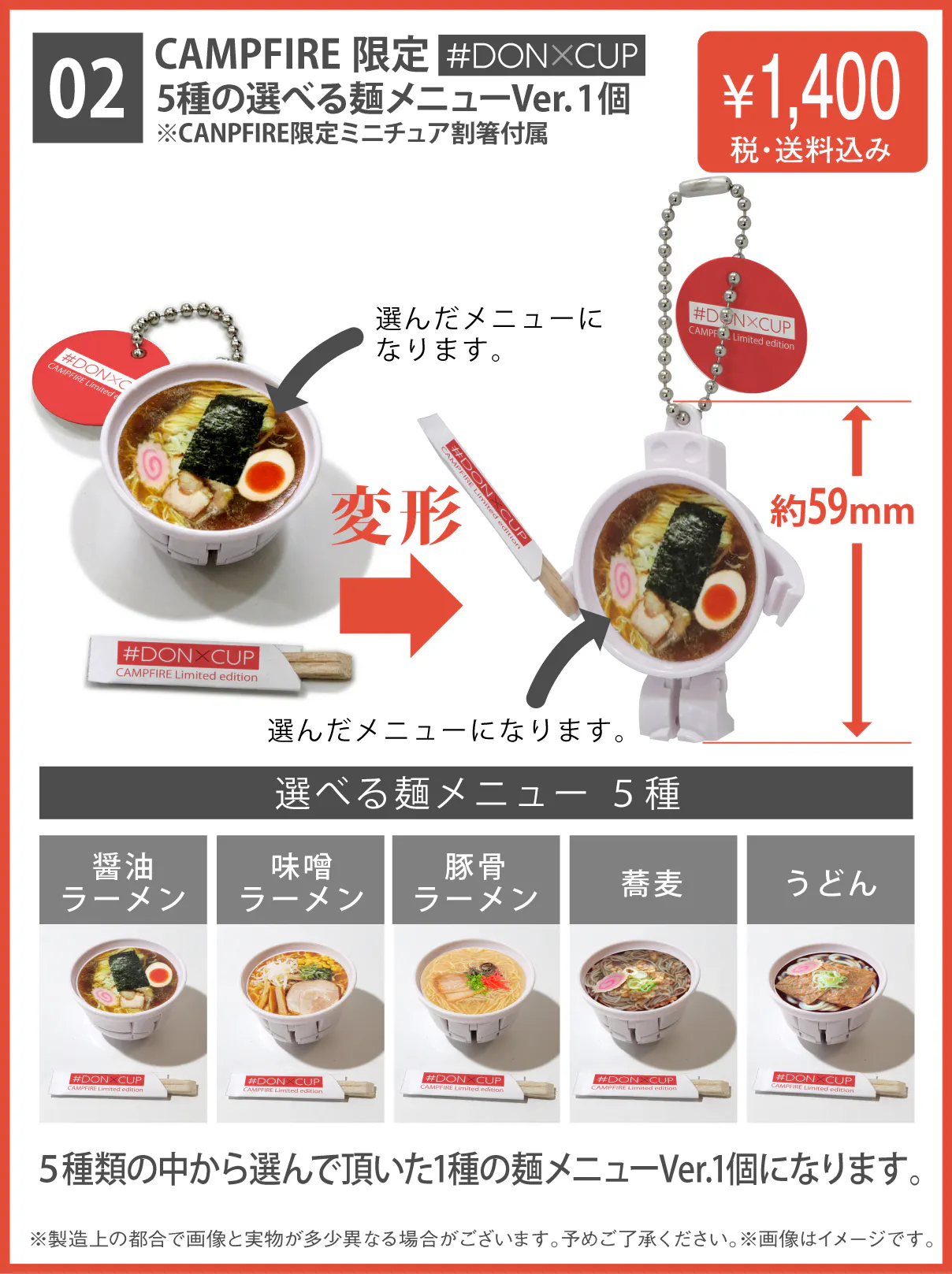本プロジェクトでは5種の選べる麺メニューVer.の「#DONXCUP」をご用意しています。