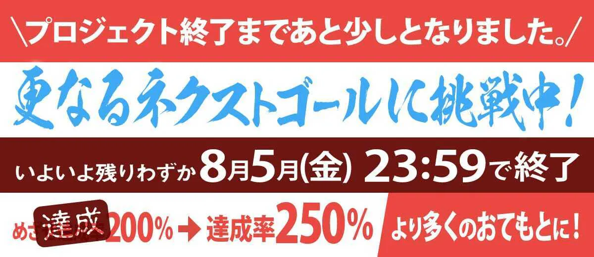 目標金額100%を達成後、ネクストゴール目標達成に向け活動を続けて参りましたが、