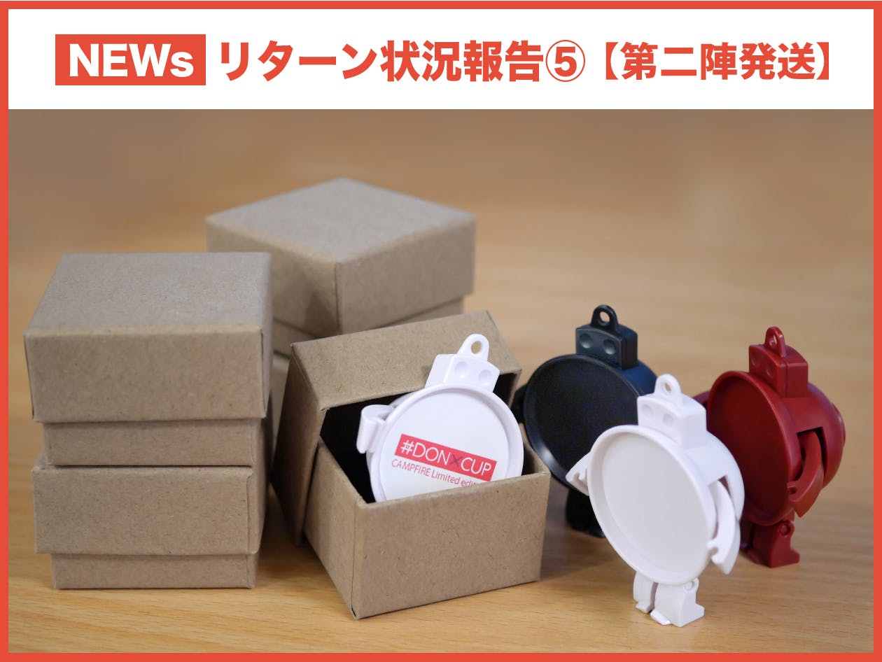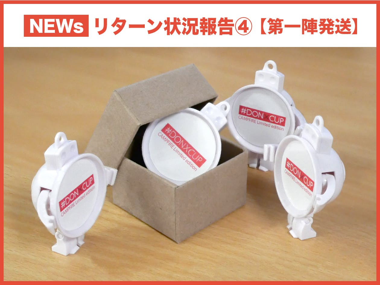 2022/09/12 12:30ご覧頂き有り難うございます。リターンの状況に付きまして近況のご報告を掲載させていただきます。「リターン状況報告②」でお知らせ致しました、成形品のパーツ切り出し、そして組み立てを無事終えました。組み上がった「#DONXCUP」が一杯ある状態を初めて目にする事になりました。ご支援頂いた皆様のお陰で頂けた貴重な機会だと感謝しています。これからも一杯の「#DONXCUP」を贈り出す機会があるようにしたいと思いました。リターンの作業ですが最終仕上げ、梱包、発送となります。リターンのスケジュールについてですが、下記の予定で進めて参ります。●2022年9月中旬:リターン順次発送開始※9/16(金)から順次発送を予定しています。リターン発送までの対応を順次進めて参りますので、おてもとに届くまで今しばらくお待ち頂くことになり申し訳ございませんが、よろしくお願いいたします!状況につきましては引き続き順次活動報告に掲載させて頂きます。また今後のことなども随時活動報告に掲載させて頂きたいと思います。初めてのクラウドファンディングの挑戦で至らぬ点が多々あるかと思いますが、引き続き応援をよろしくお願いいたします! もっと見る