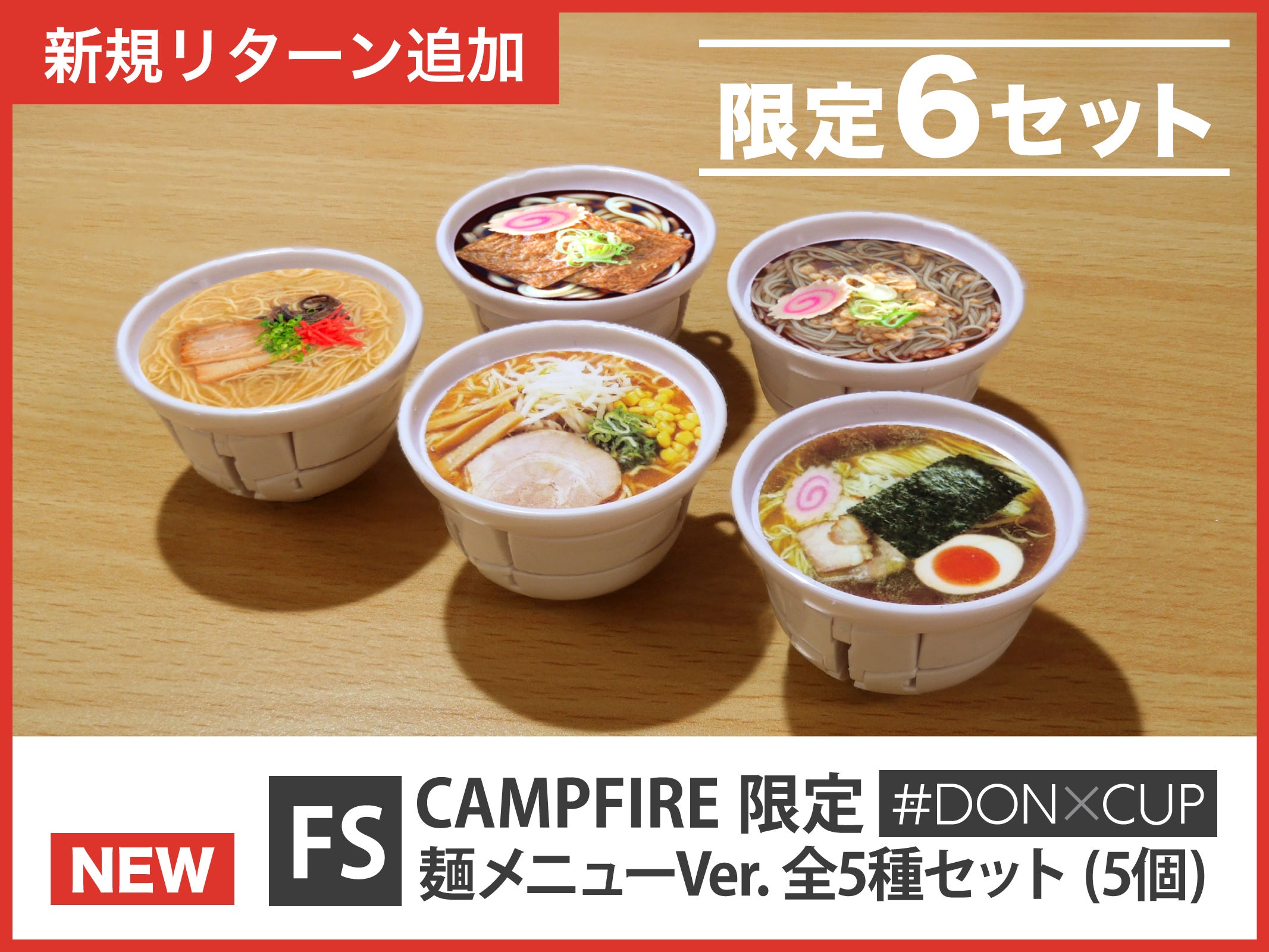 新規リターン「【FS】CAMPFIRE限定 #DONXCUP 麺メニューVer.全5種セット」を