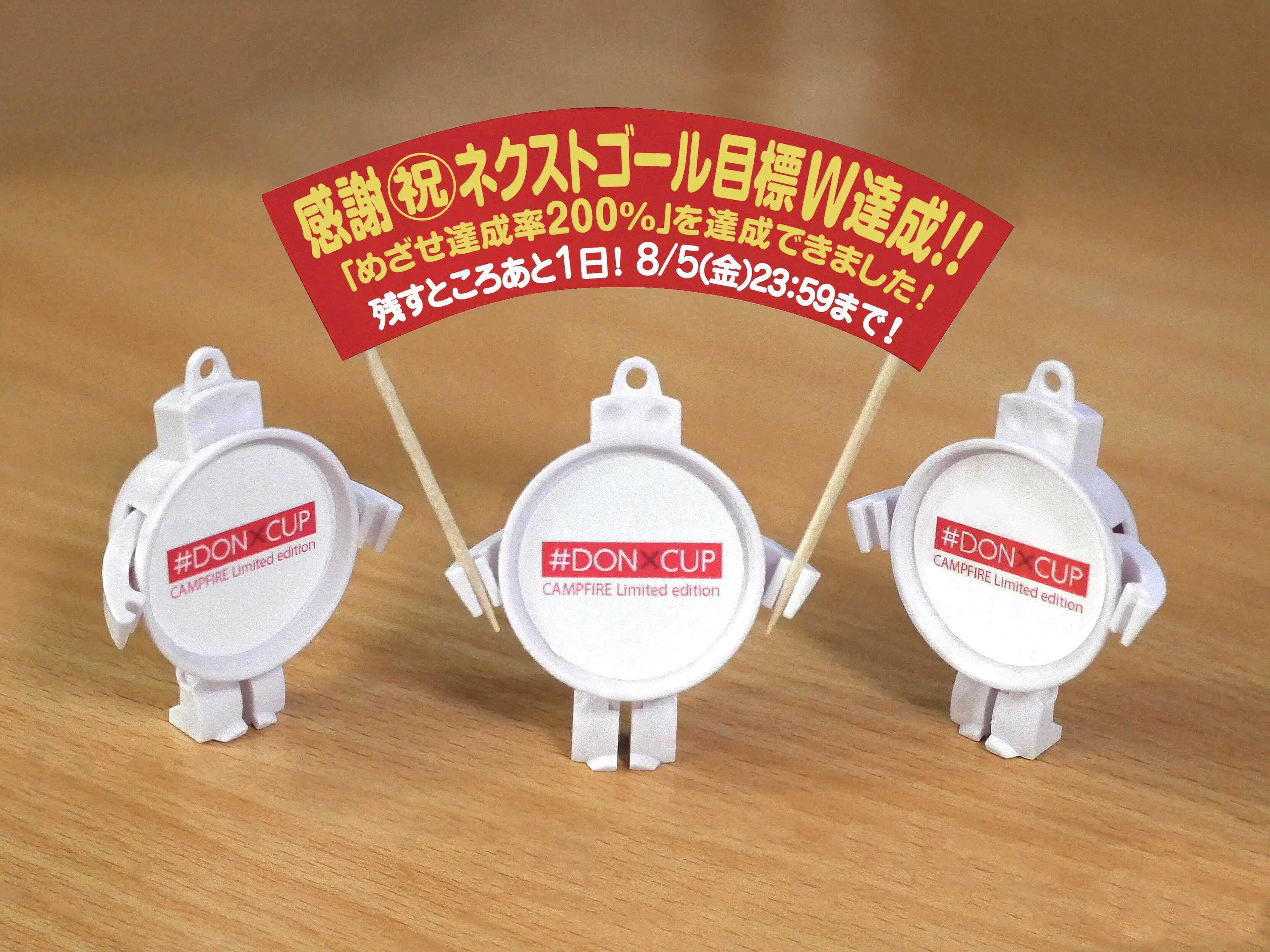 以下の2つの目標をプロジェクト終了までの次点目標として、更に1人でもより多くの方おてもとに「#DONXCUP」をお贈りできるよう引き続き活動を続けて参ります。