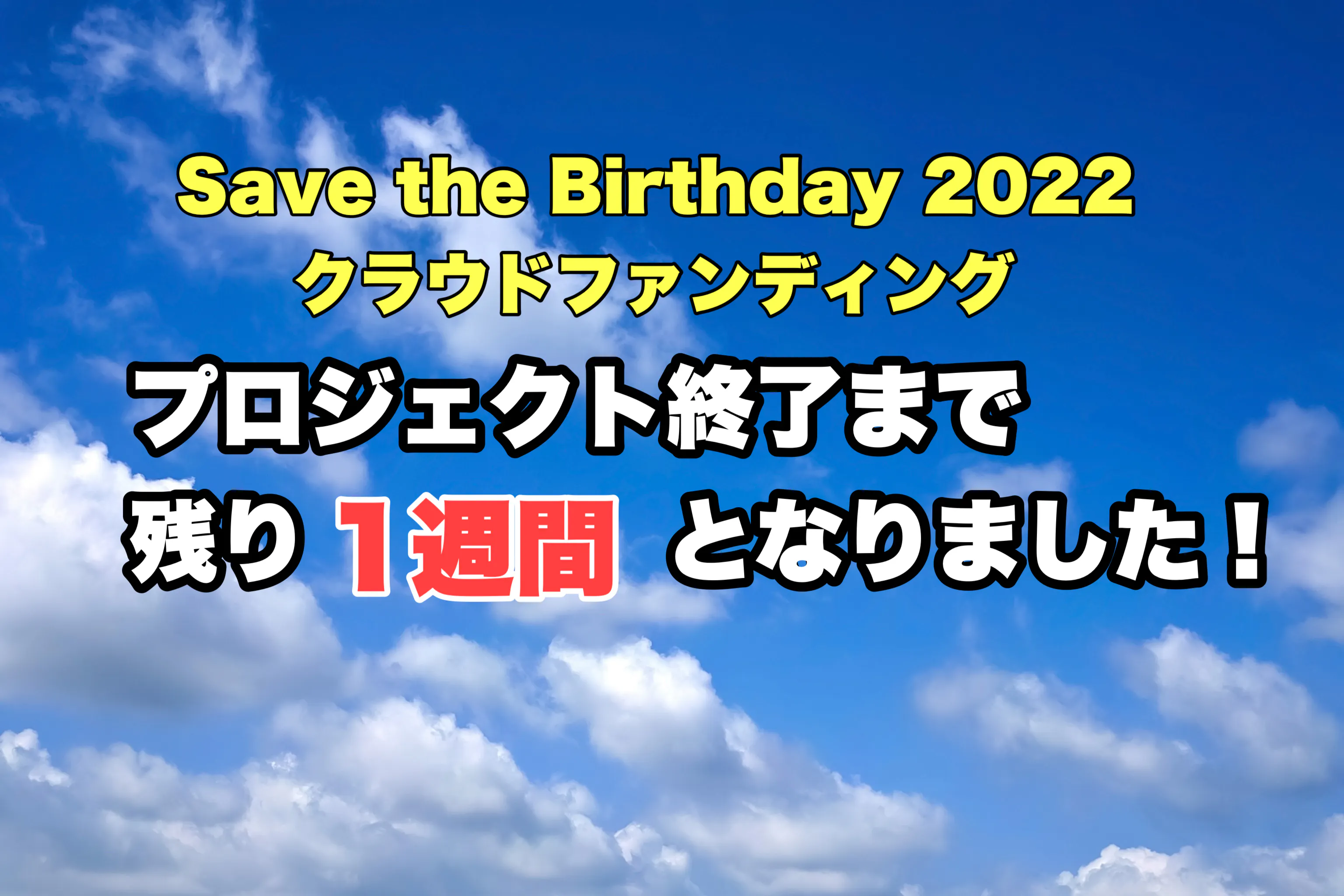 4月15日からスタートしたSave the Birthdayクラウドファンディングも、あっと言う間に2ヶ月が経過し、残り1週間となりました!