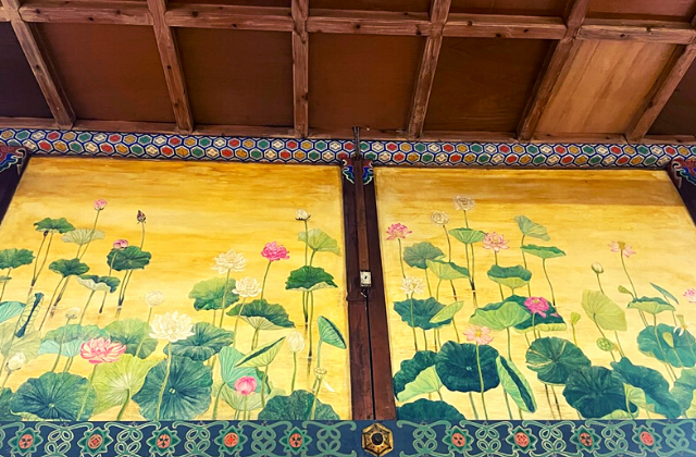 金箔貼りした壁面には父が蓮を描きました。