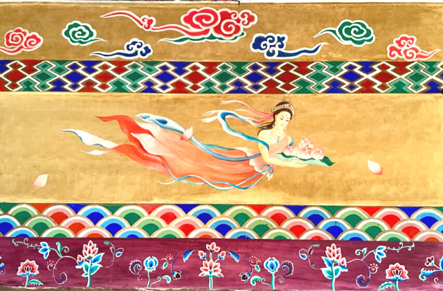 中段は、天人・天女(広い意味での仏教という観点からタイ壁画の技法を駆使しました。)