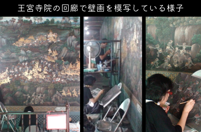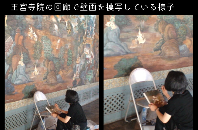 2007年から2年間、タイ王宮寺院ワット・プラケオ(エメラルド寺院)の回廊壁画の研究・調査に携わり、仏教信仰と美術の融合に触れる。タイの国立の芸術大学でタイ壁画の素材や伝統的技法、描写方法などについて学び、翌年には王宮寺院の回廊壁画の模写を行う。以降、タイの古典絵画の描き方やテクニックを研究。