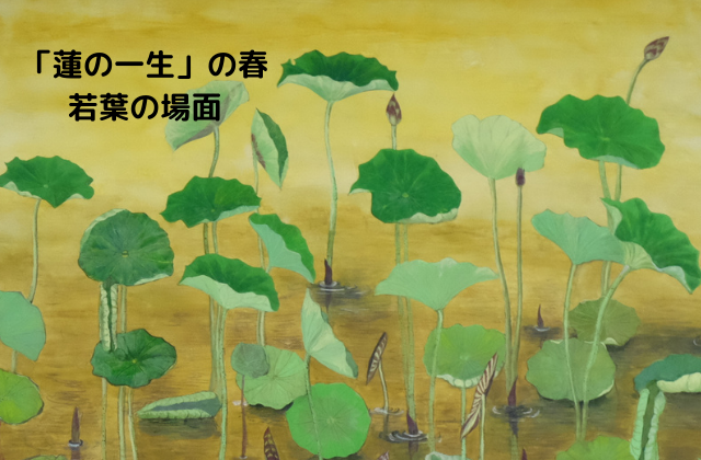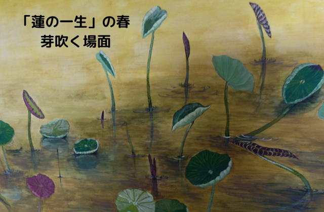 「蓮の一生」の1面目は、春の芽吹く場面。