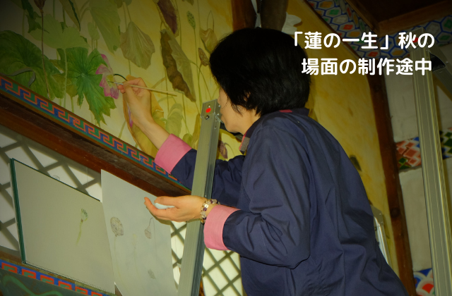 3面目は、夏の開花する場面。彩色途中の様子。