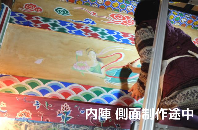そこで、この機会に天井画に着手することにしました。天井画を描いて極楽浄土の世界観を表現し、完結させ、多くの参拝者や応援してくださる方々にご覧いただきたいと思います。