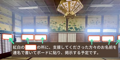 支援してくださった方のお名前を、雲光寺の本堂 外陣に掲示いたします。