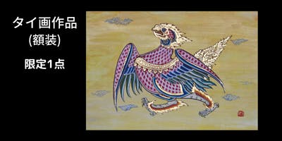 壁画に登場する迦陵頻伽(タイではキンノン)を描いたタイ画作品を額装し、お礼のお手紙と一緒にお送りさせていただきます。