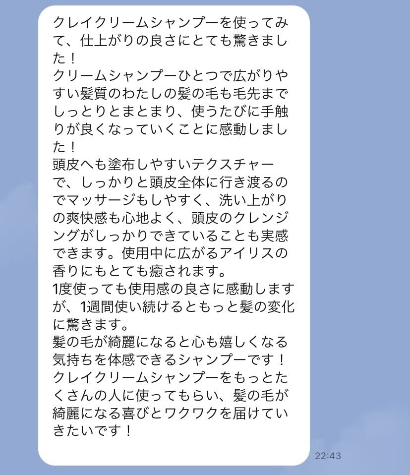 このシャンプーが沢山の髪と頭皮の事で悩む人達を救い幸せな日常の一部に溶け込めたらとても嬉しいです。