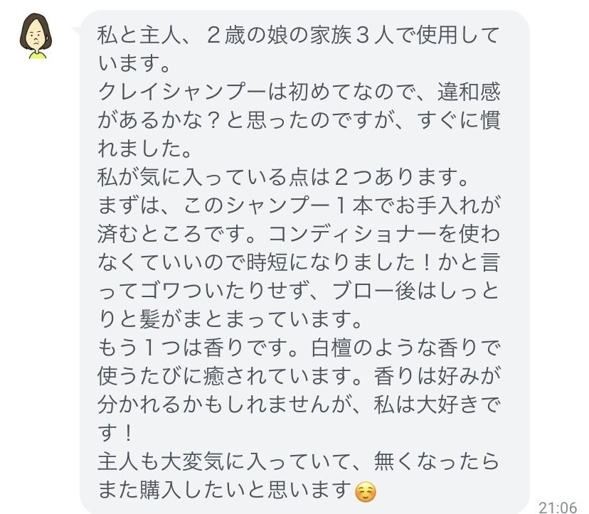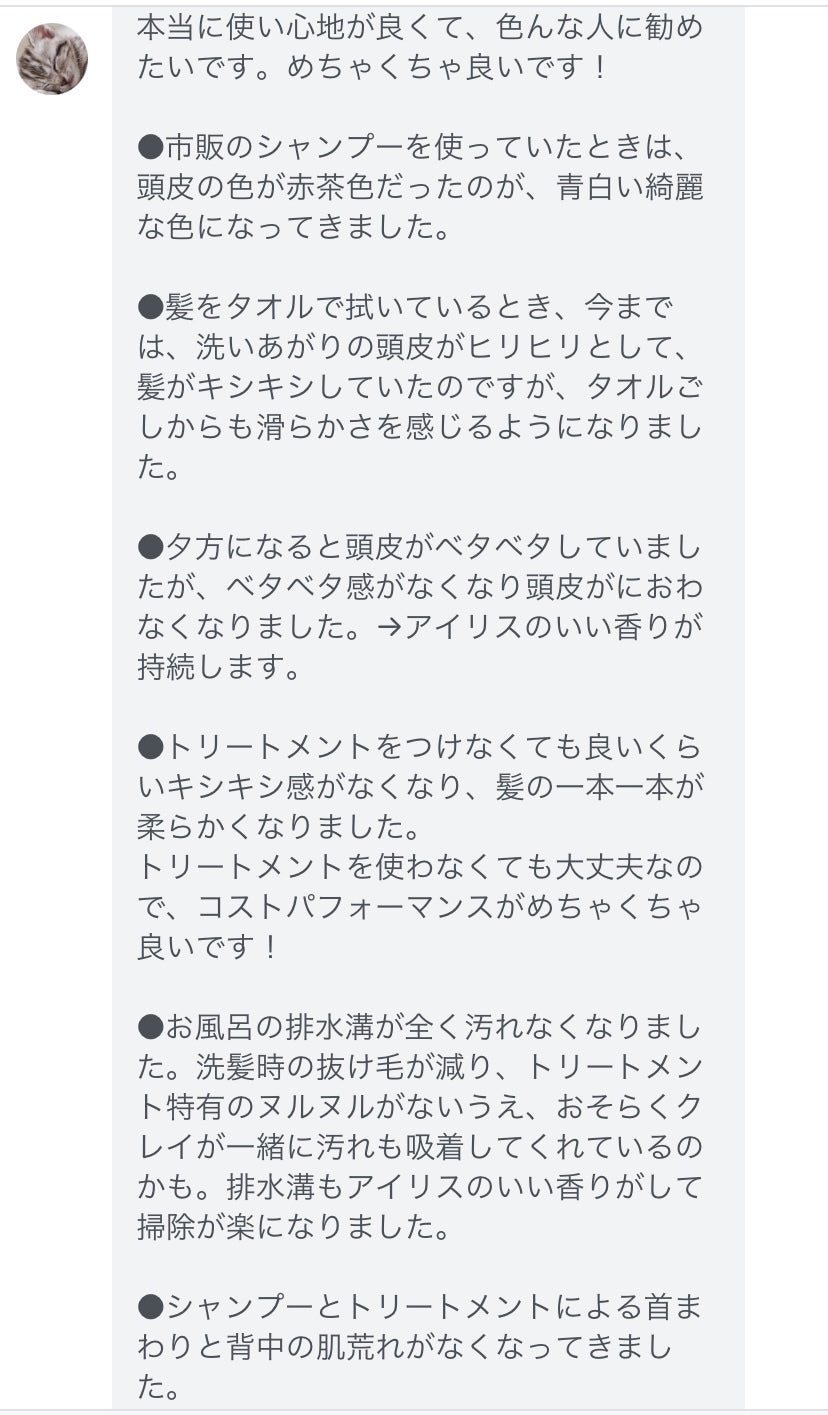 ・今まで泡立つシャンプーだと頭皮に痒みが出ていたけど一切なくなった