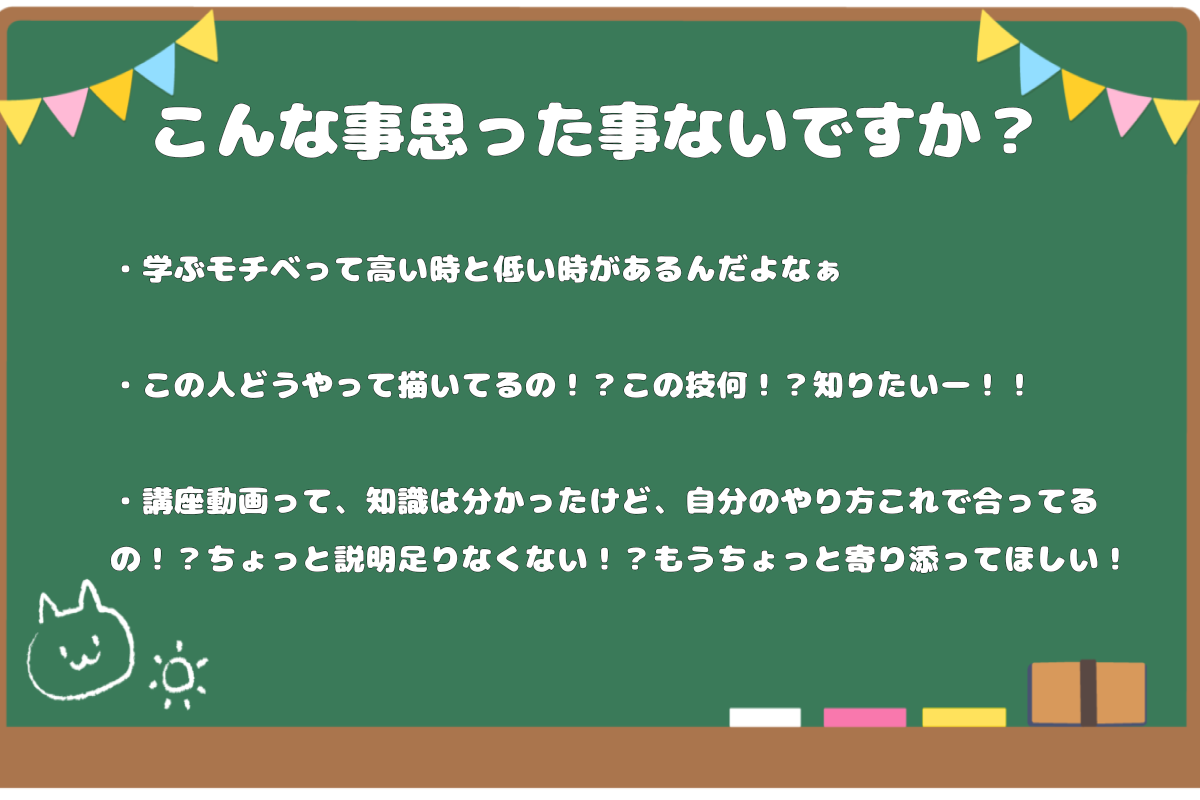 ・オンラインでカメラ通話や、画面共有しながらイラストや、クリエイティブな事が学べます。