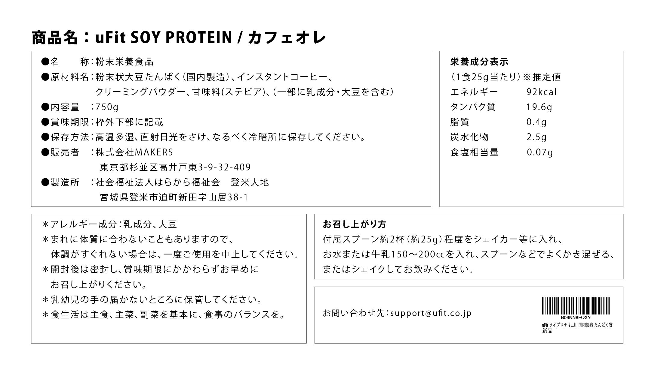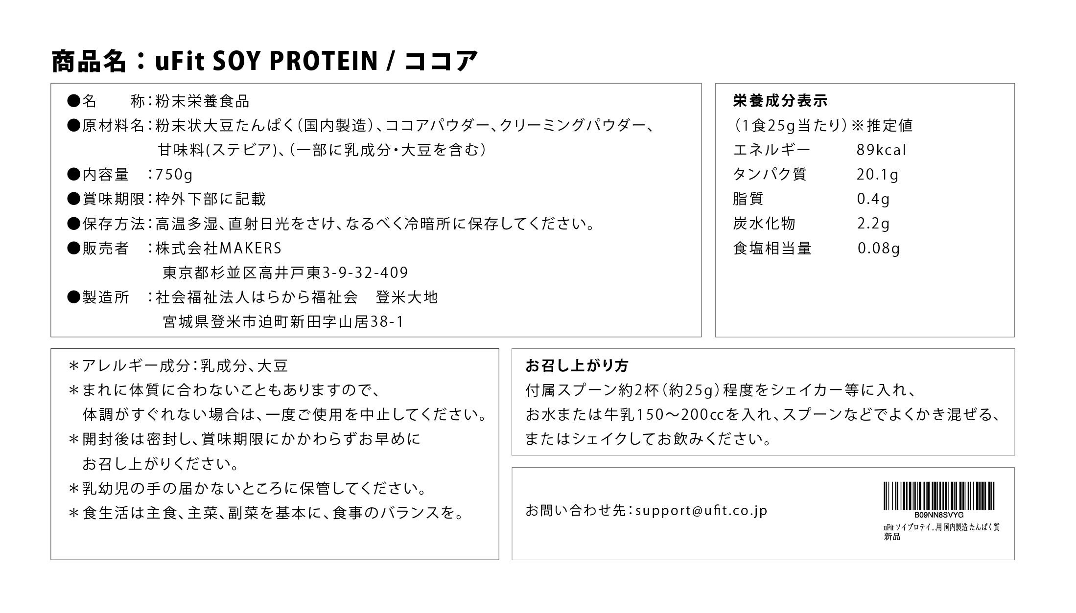 uFitソーシャルソイプロテインは中長期的に飲むことを前提として甘すぎない味で作っているため、過度な味つけは期待なさらないようご了承ください。