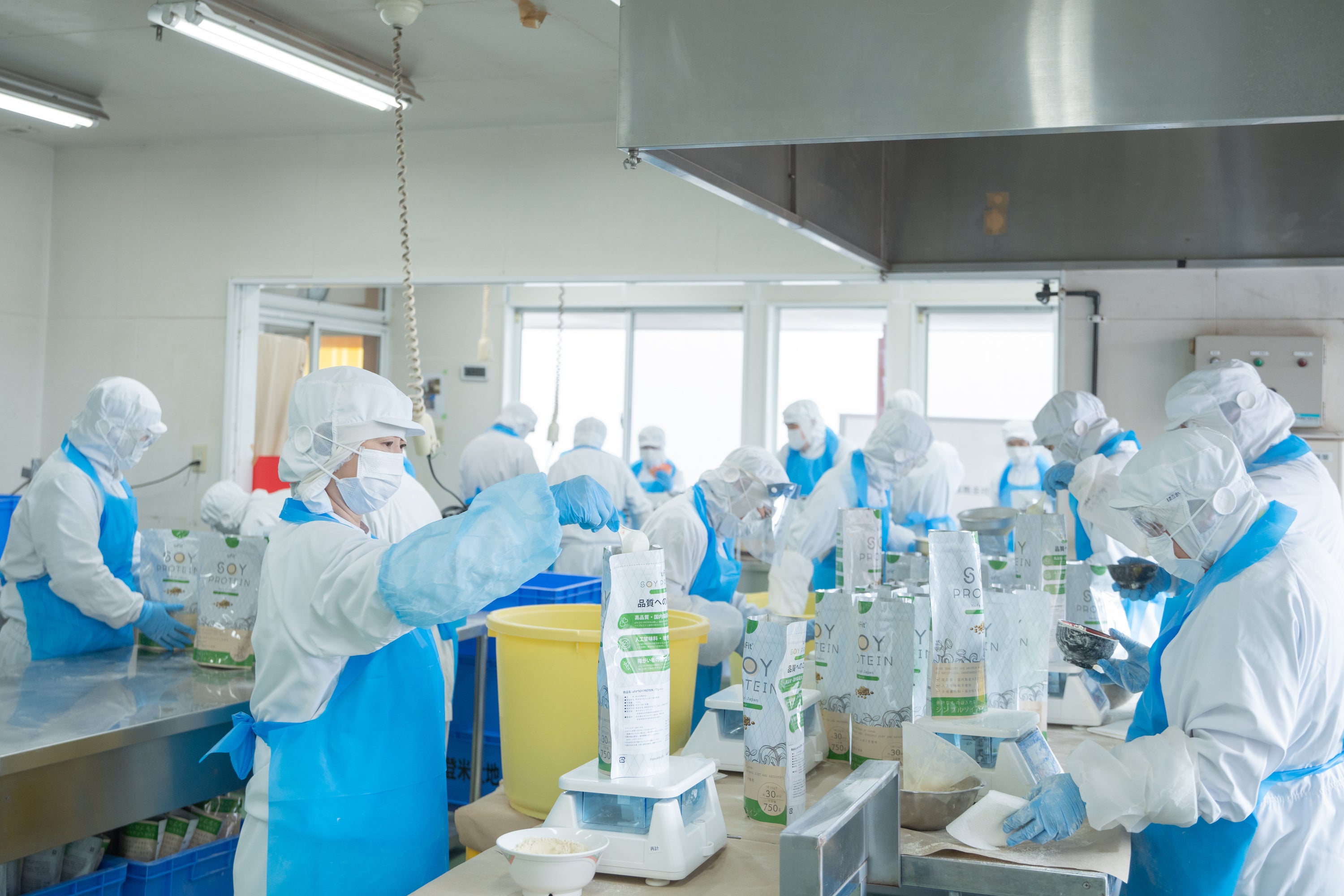 原材料の大豆は、最高品質の大豆を使用。安価な大豆との違いは、大豆臭さが低減され、溶けやすく、ダマになりにくいという特徴があります。