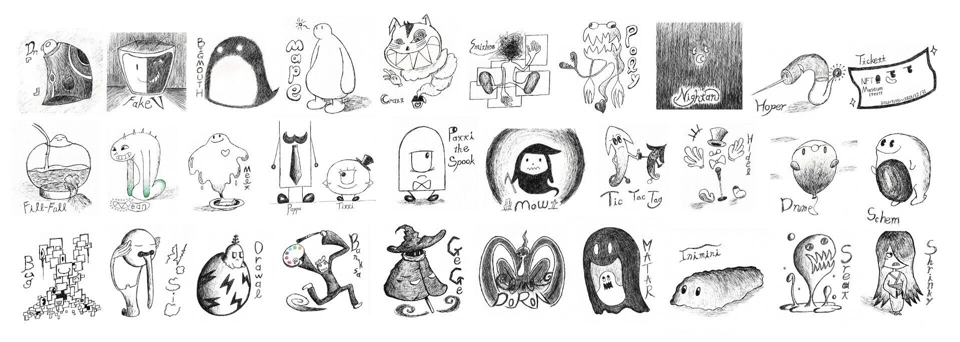 ■おばけの世界に住むおばけたちのボールペン絵■