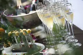 鬼ヶ島スタックのワインソムリエが厳選した寿司にあうシャンパンをご用意、寿司ケーキの他にもシャンパンと合うようなメニューを立食形式で提供させて頂きます。