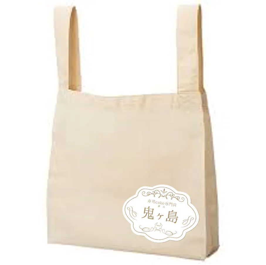 この度寿司cake専門店鬼ヶ島がオープンするにあたり、限定オリジナルエコバックを作成致します!