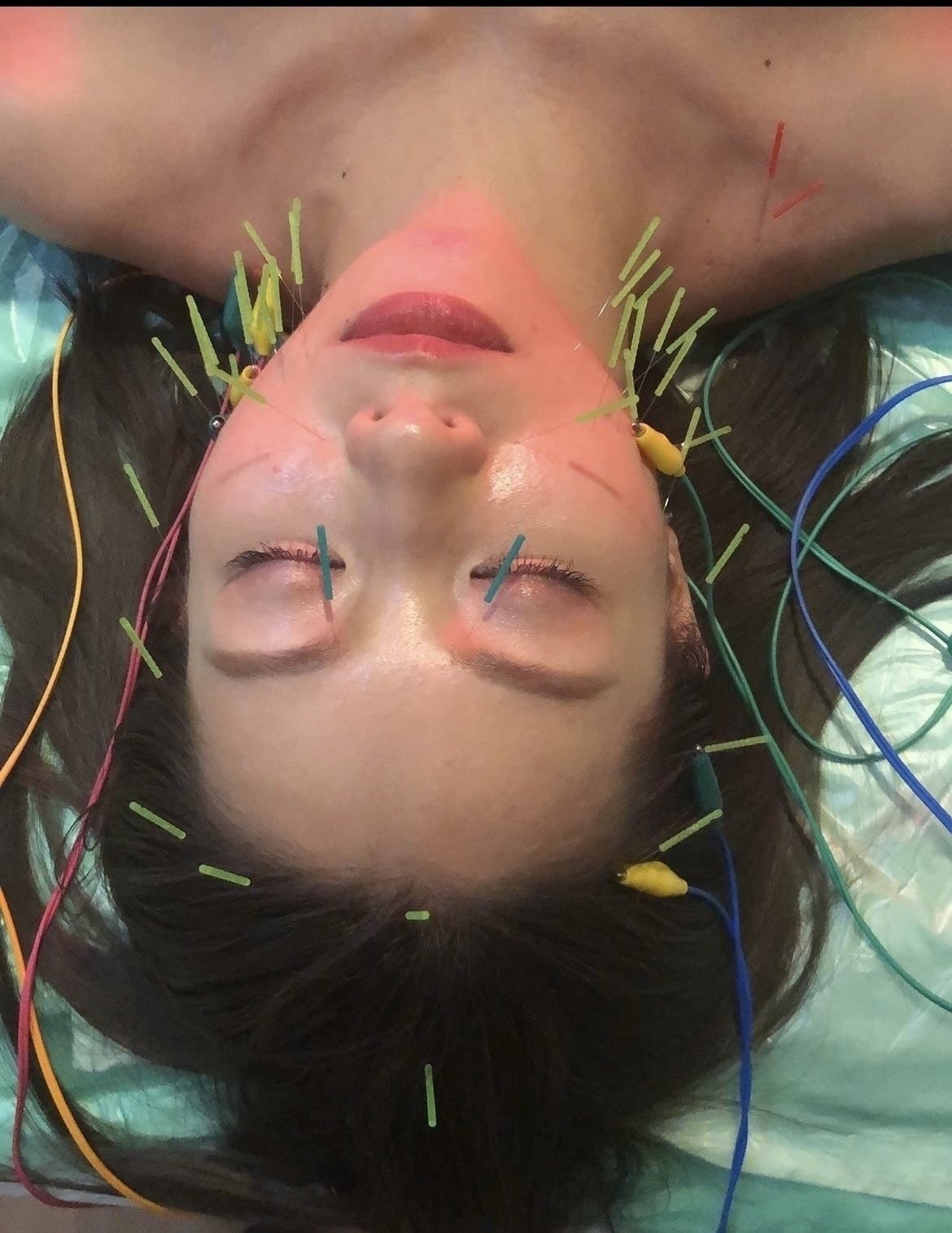 凝り固まったお顔の筋肉に、鍼を刺していきます。スッキリ小顔に!