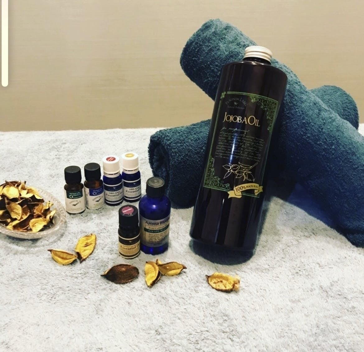 (ゼラニウム、ラベンダー、イランイラン、フランキンセンス、ジュニパーベリー、スペアミント)お好きな香りをアロマ検定一級の私が体調に合わせて一緒にお選びします。