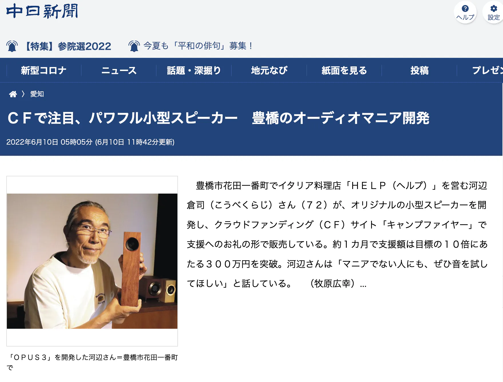 地元の「中日新聞」に、OPUS3は今朝掲載されました。
