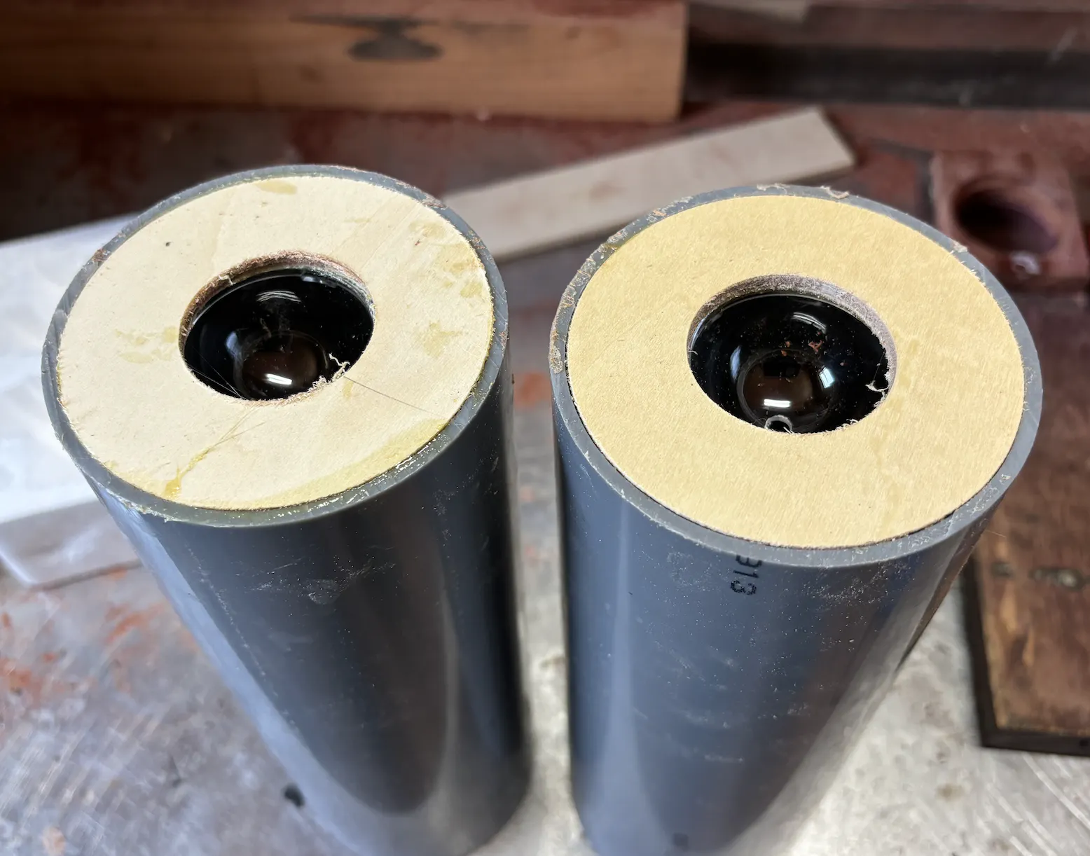 直径40ミリのドームバスレフの穴を、6ミリの穴から5ミリの穴にサイズダウンしました。画像では確認が難しいかな???