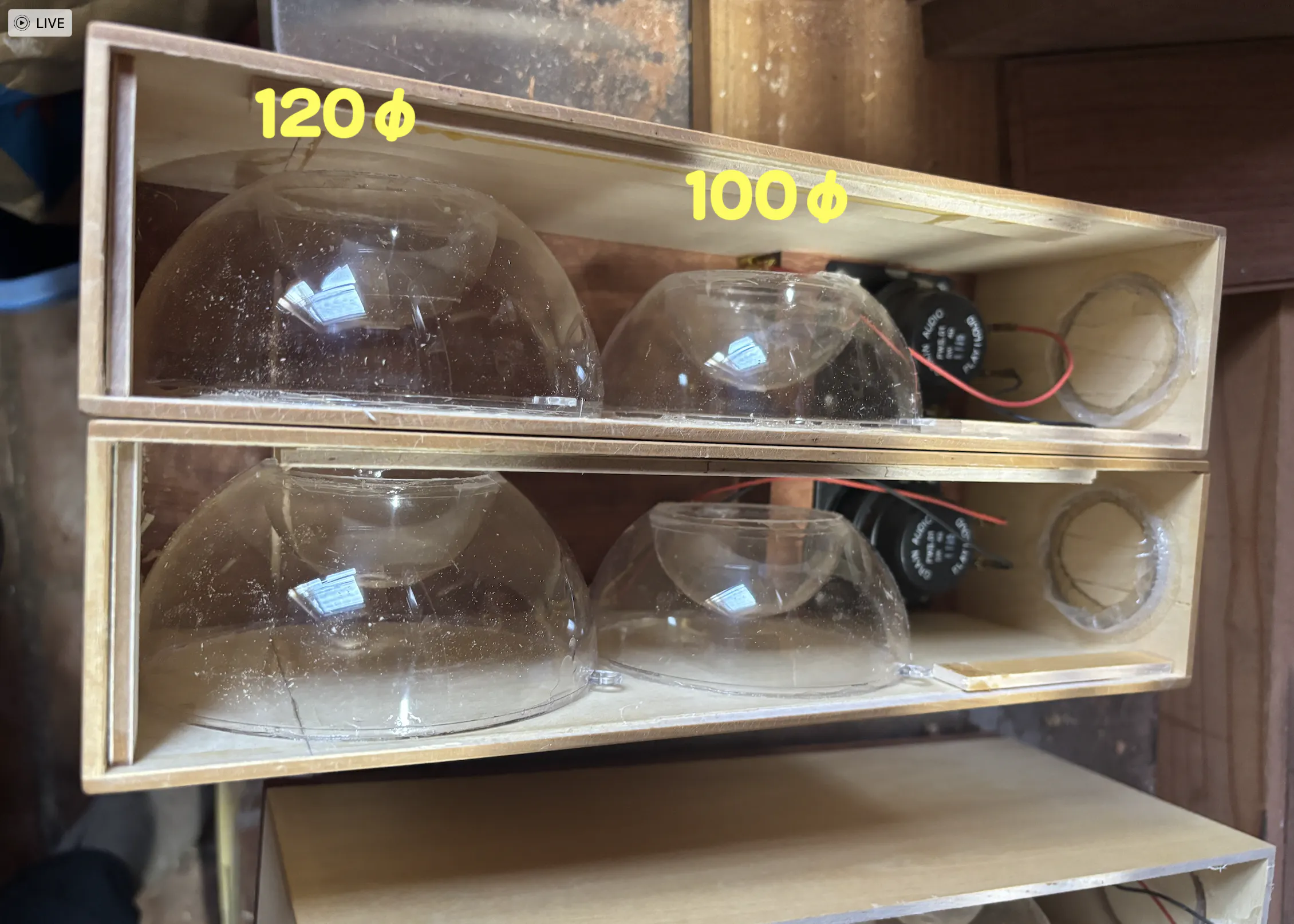 それにしても、120Φのダブルドームは並外れた音を提供してくれます。5cmのユニットを使ったOPUS3でも、120Φのダブルドームと100Φのダブル・ドームの組み合わせは、30cmのユニットかと思わせる音を出しますよ。これ以上はスピーカー内に設置するスペースがありません。