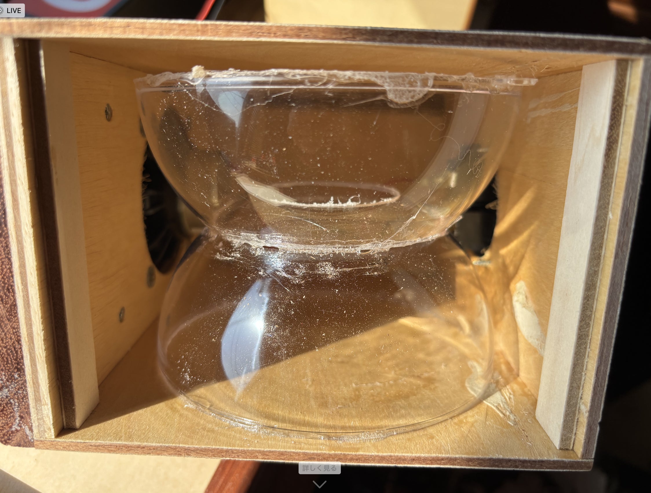 ダブルドームは現在上下120Φのドームを使用しています。下の120Φの80Φの穴を開けています。その上に120Φのドームに50Φの穴を開けたものを乗せています。幅106mm内寸98mmには、このサイズが限界です。