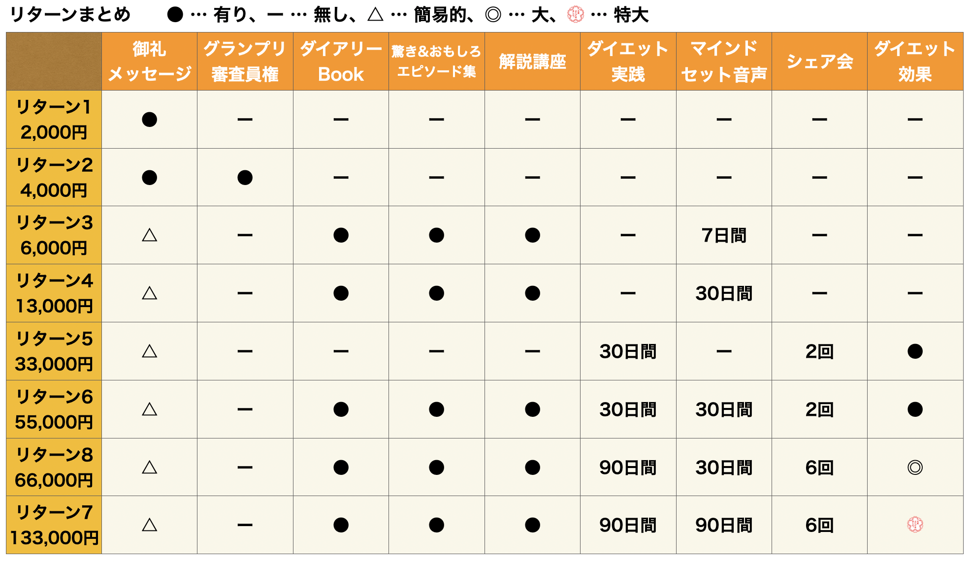 ダイアリーBookが含まれないリターンや