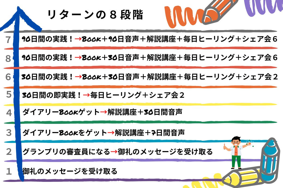 2022/05/14 13:31このページをご覧いただきまして、ありがとうございます。もし、ダイエットを検討されているのでしたら、少し、お待ち頂けますでしょうか。リターン7では、90日間のダイエット実践中に音声が90日間毎日配信されるのですが、「90日間も音声を聞けない」というお声を頂きましたので、急遽、音声を、90日間→30日間に減らして、リターン8として追加することにしました。このことにより、全体的な負担を大幅に減らすことが出来たと思います。ただいま、リターン8は申請中ですので、公開されるまで、しばらくお待ちいただけると幸いです。※5/16(月)公開できる見込みです。何卒、よろしくお願い申し上げます。 もっと見る