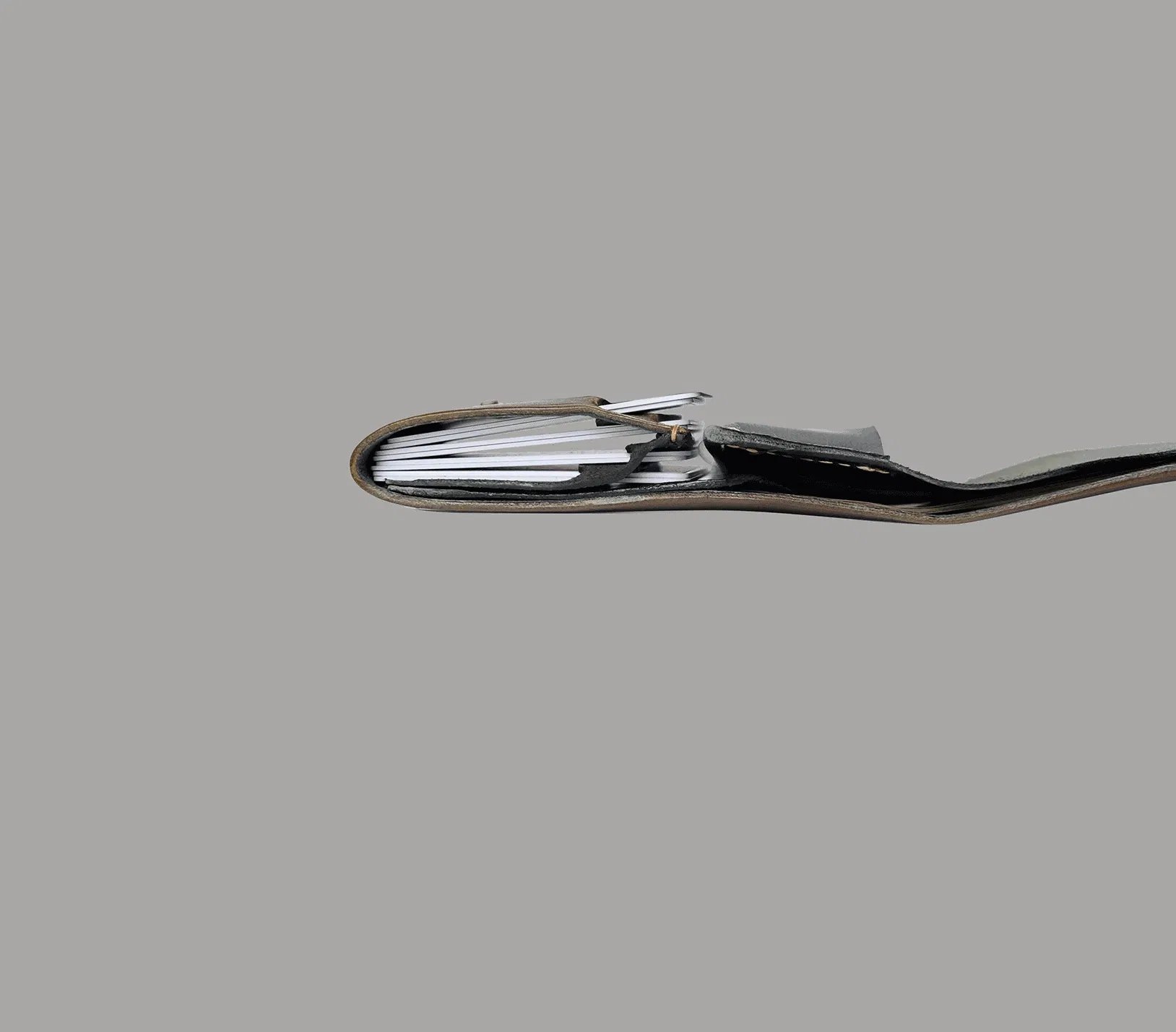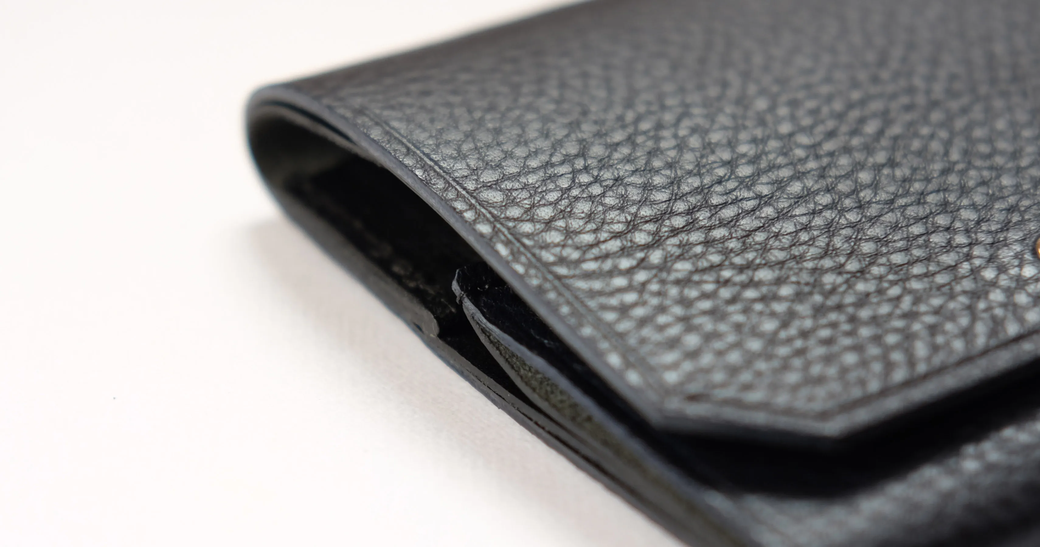 財布全体を支える本体の革は、2枚の革を隙間なく張り合わせています。