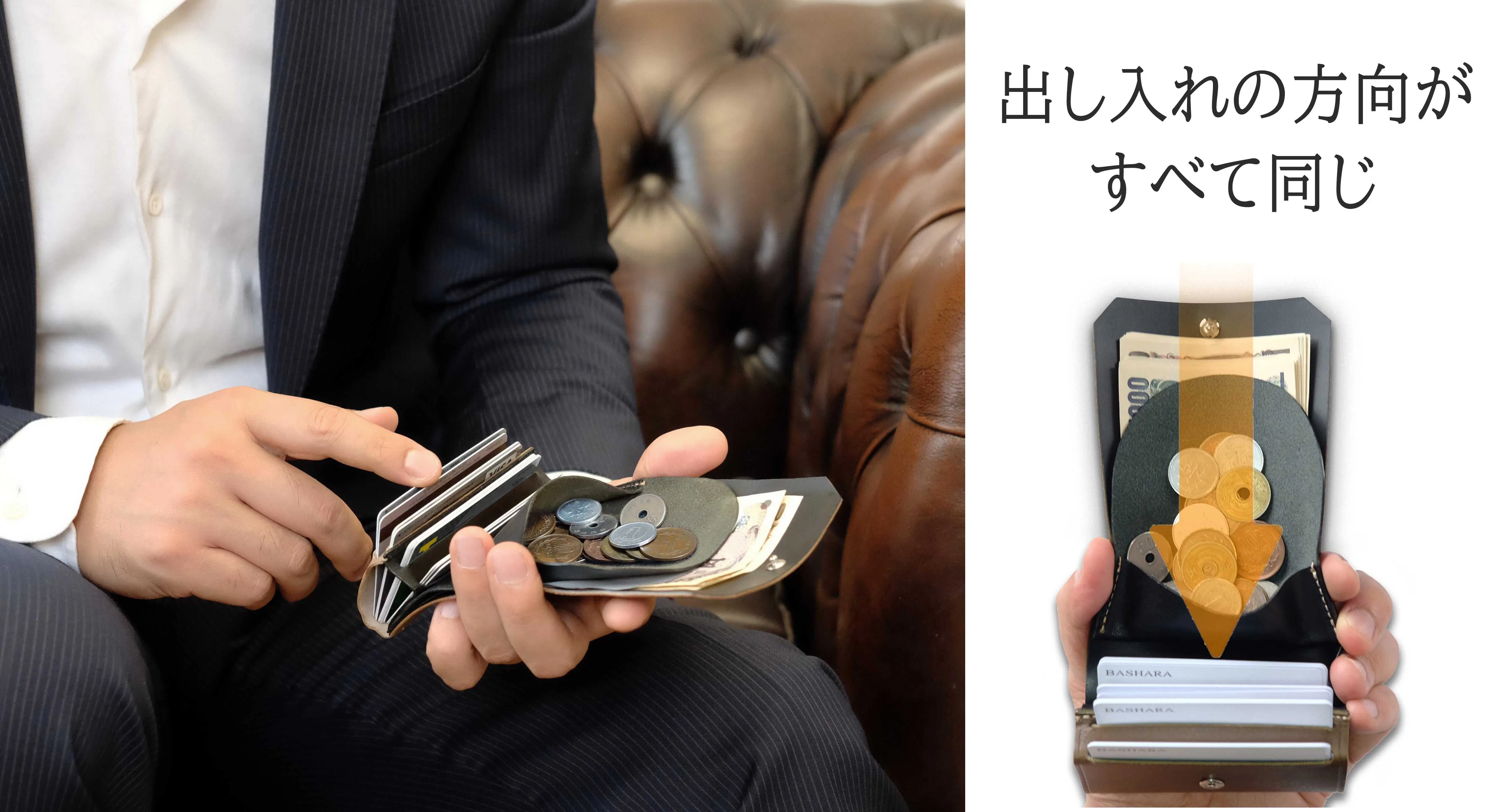 さらに、出し入れの方向がすべて同じだから「カードは横から、お札を取り出す時は財布を持ちかえて‥」等、財布を縦に横に動かす必要がありません。