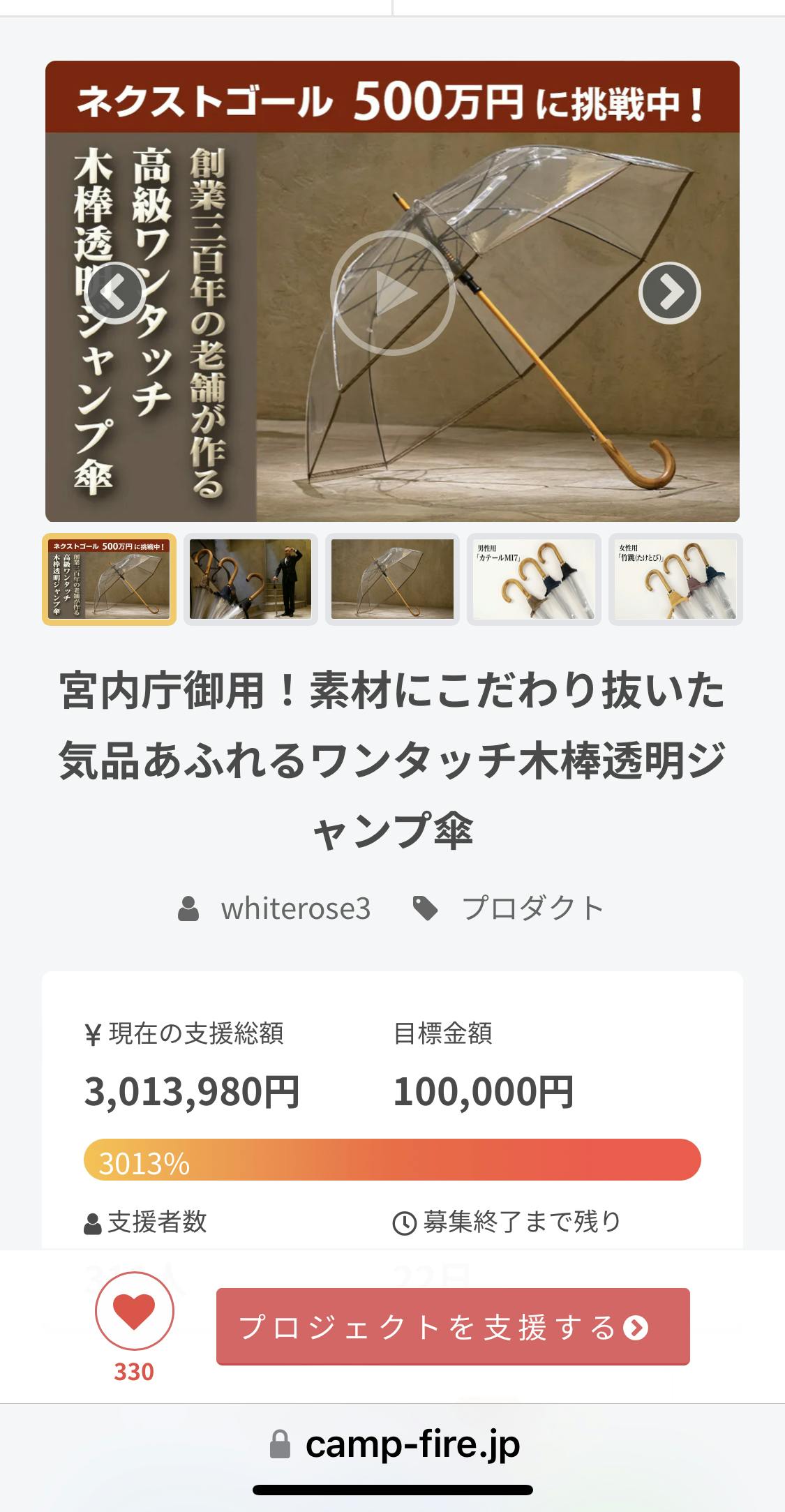 皆さまのたくさんの応援で、300万円達成させていただきました。重ねてお礼申し上げます。