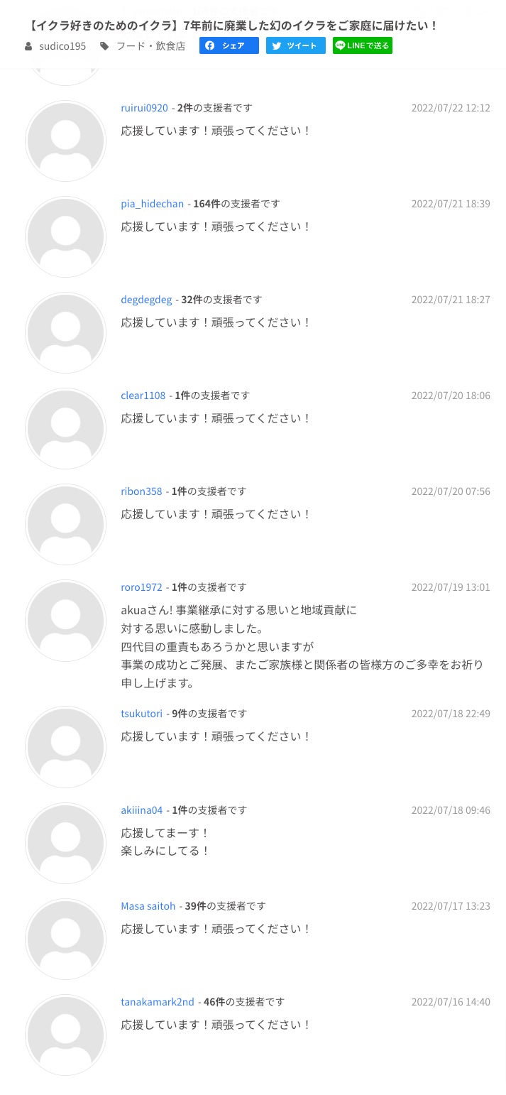 早々に11名の方からご支援をいただき、驚きとともに、感謝の気持ちでいっぱいです。